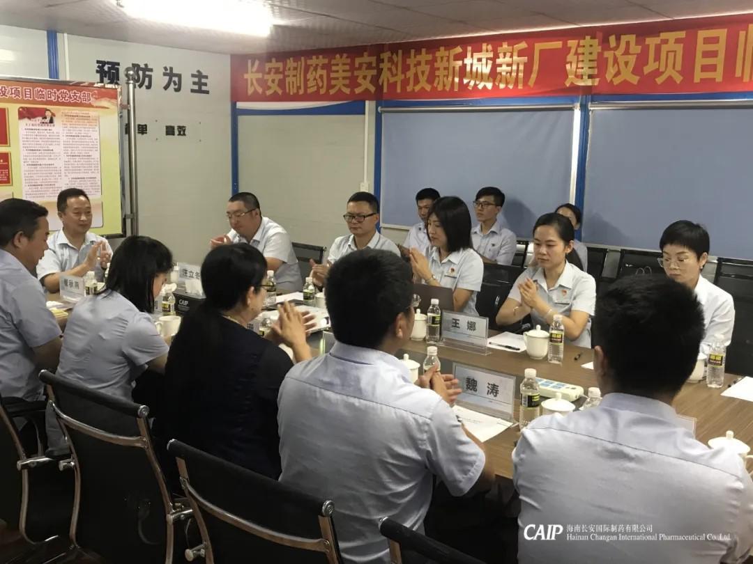長安制藥美安科技新城新廠建設項目臨時黨支部,是由海南長安國際制藥有限公司黨支部和海南萬泰建筑工程有限公司黨支部聯合發起成立。大會議程分為選舉第一屆臨時黨支部書記、臨時支部書記表態發言、海南長安制藥黨支部書記汪立冬及海南萬泰黨支部副書記孟晨講話、高新區兩新組織黨委專職副書記傅愛萍講話、揭牌儀式六項內容。傅書記在講話中指出,臨時黨支部除了加強深入基層學習,還要結合項目工地實地開展符合自身特色的黨員活動,把黨的工作落到實處。
