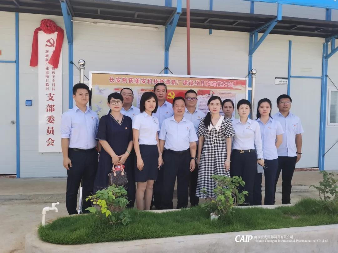 2020年7月1日上午,在慶祝中國共產黨建黨成立99周年之際,長安制藥美安科技新城新廠建設項目臨時黨支部成立大會順利召開。高新區兩新組織黨委專職副書記傅愛萍、海南長安制藥支部書記汪立冬、海南萬泰支部副書記孟晨以及長安制藥美安科技新城新廠建設項目臨時黨支部全體黨員參加成立大會及揭牌儀式。