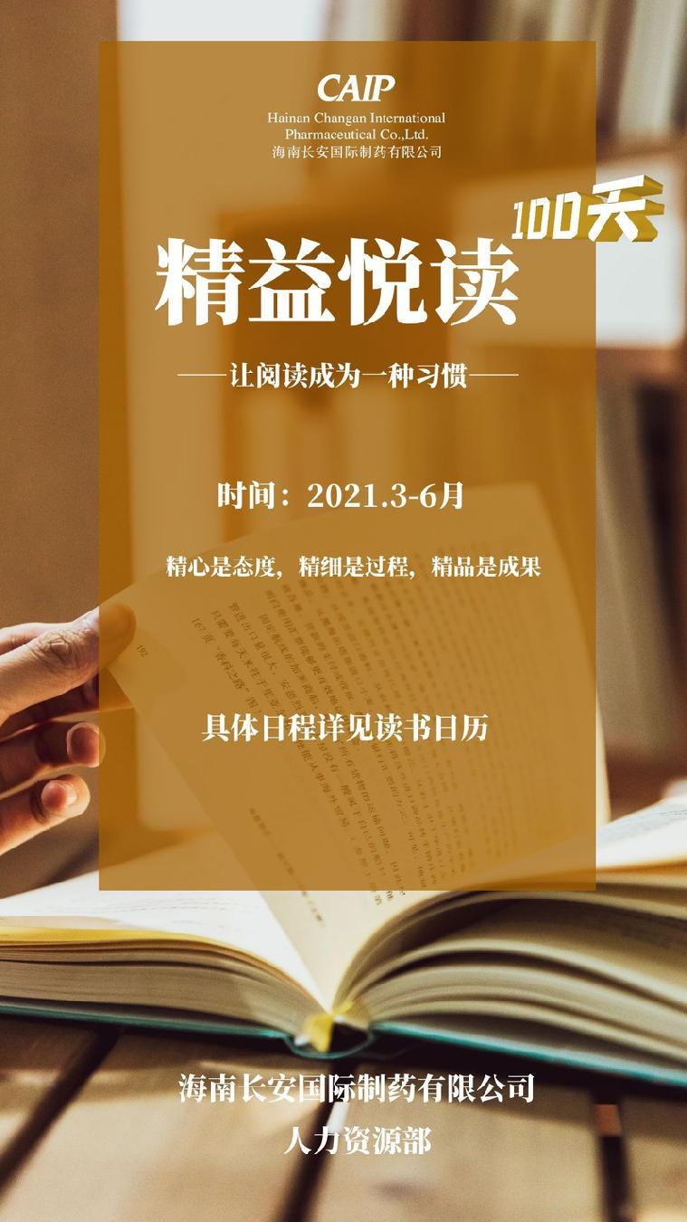 精益悅讀100天讀書會作為長安制藥2021年新增的讀書會活動,此次活動旨在營造全司閱讀氛圍,養成愛讀書、會讀書、好讀書、讀好書的良好習慣,既學到知識又能收獲快樂;在不斷自我提升,成為一個有獨立思想的人的同時,促進長安制藥的文化事業發展,進一步加強公司各級干部員工的質量管理意識,促進大家學習書本中的寶貴的經驗并利用到各自的崗位實際當中。