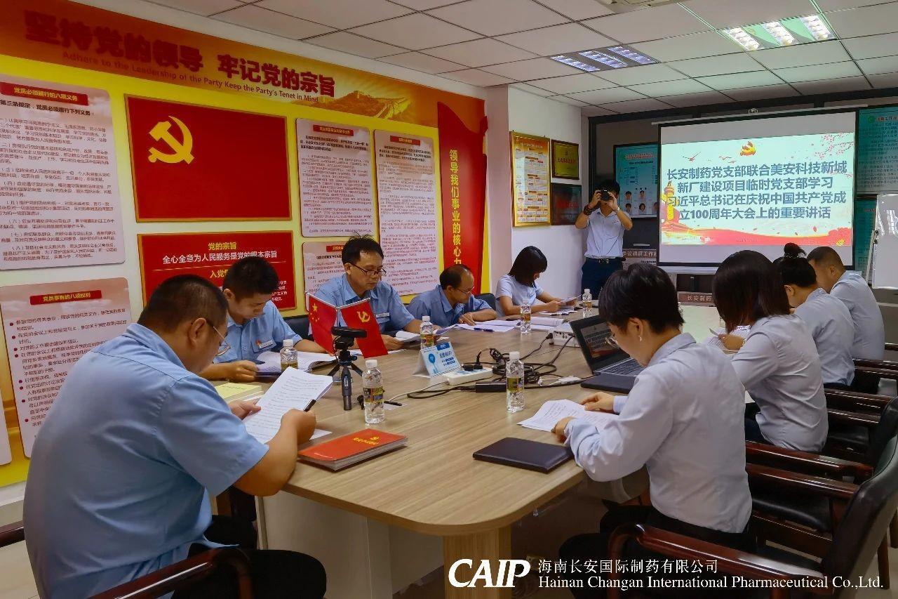 2021年7月26日,根據海口市委宣傳部《關于轉發<關于組織召開黨史學習教育專題組織生活會的通知>的通知》(海學組辦發〔2021〕17號)文件指示精神,按照中共??趪腋咝聟^工委的部署要求,長安制藥黨支部聯合美安科技新城新廠建設項目臨時黨支部召開黨史學習教育組織生活會,全體黨員和入黨積極分子參加。