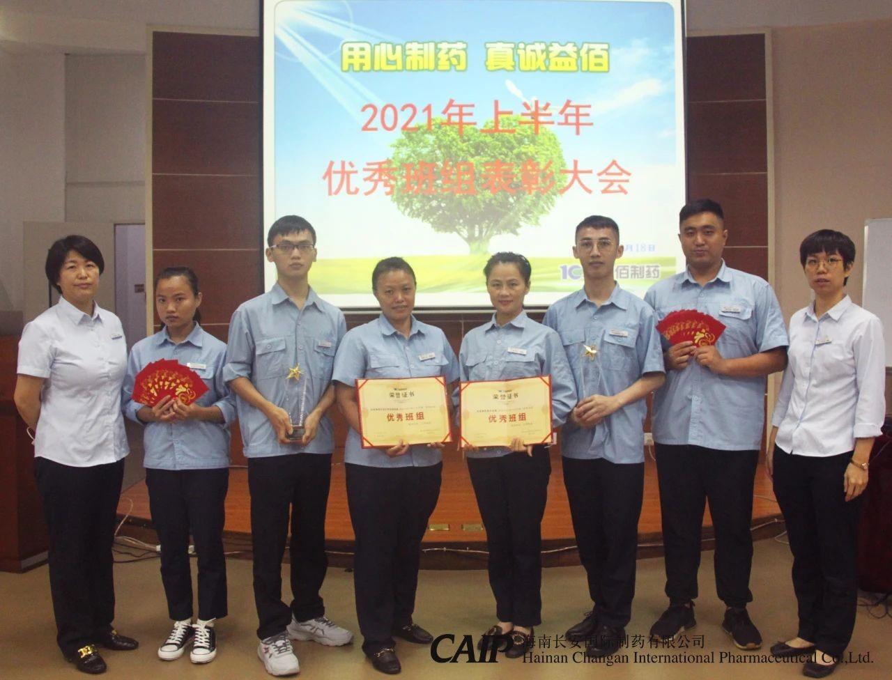 2021年8月18日,益佰集團召開2021年上半年度優秀班組表彰大會,長安制藥原料班組、外洗燈檢貼簽班組榮獲益佰制藥2021年上半年度“優秀班組”稱號! 長安制藥將繼續秉承“不忘技術初心,牢記質量使命“的理念,在下半年的工作中再接再厲,再創新高!