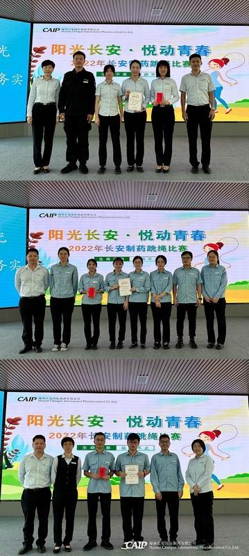 經(jīng)過(guò)緊張激烈的比賽,最終是行政部組成的“志今朝隊(duì)”獲得團(tuán)體比賽第一名,質(zhì)量控制部和EHS部組成的“還是那個(gè)隊(duì)”獲得團(tuán)體比賽第二名,產(chǎn)品制造部、藥物警戒科、物料管理部、研發(fā)部、質(zhì)量審計(jì)科組成的“繩彩飛揚(yáng)隊(duì)”獲得團(tuán)體比賽第三名。