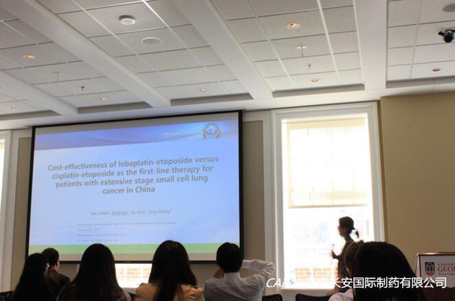 近日,《洛鉑聯合依托泊苷對比順鉑聯合依托泊苷一線治療國人廣泛期小細胞肺癌的藥物經濟學研究》學術論文在美國University of Georgia Athens的CES北美年會上,被以口頭報告形式向全球與會者匯報研究成果,并進行學術交流。